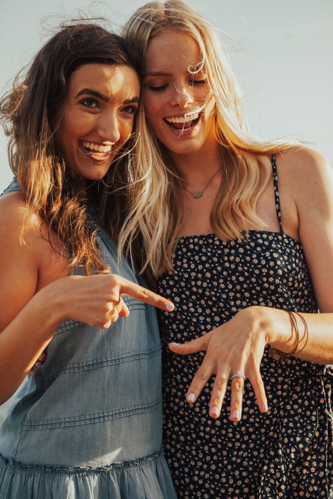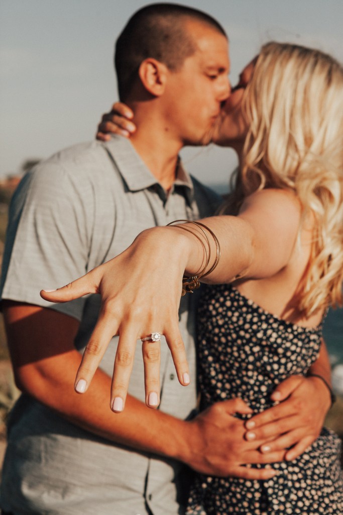 As soon as we arrived, Makenzie and I started taking pictures with the sunset. This beach is my favorite because of the views… seriously it doesn’t get any better than a sunset on the coast in July. We walked down a little further and Makenzie had asked me to take a picture of her and her boyfriend Stephen, but she left her phone in the car. I told her we could use mine, but she insisted she needed to go back to the car to grab hers. This is when I knew something was up because Makenzie is not like that and she isn’t a good liar! I could see Jesse starting to sweat and look around and I said to myself, “HOLY COW IS THIS REALLY ABOUT TO HAPPEN?” A few seconds later Jesse got down on one knee and proposed and it really was the best day of my life. Little did I know he had one of our best friends there photographing the entire thing, along with a few of our other friends and Makenzie as well. The entire thing was exactly what I had always dreamt of!