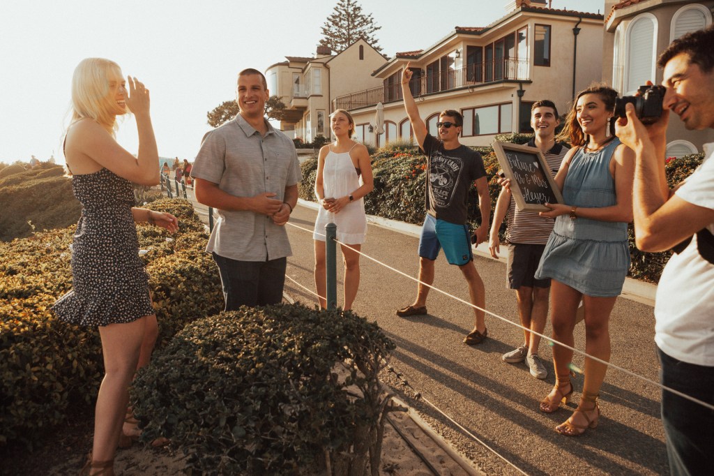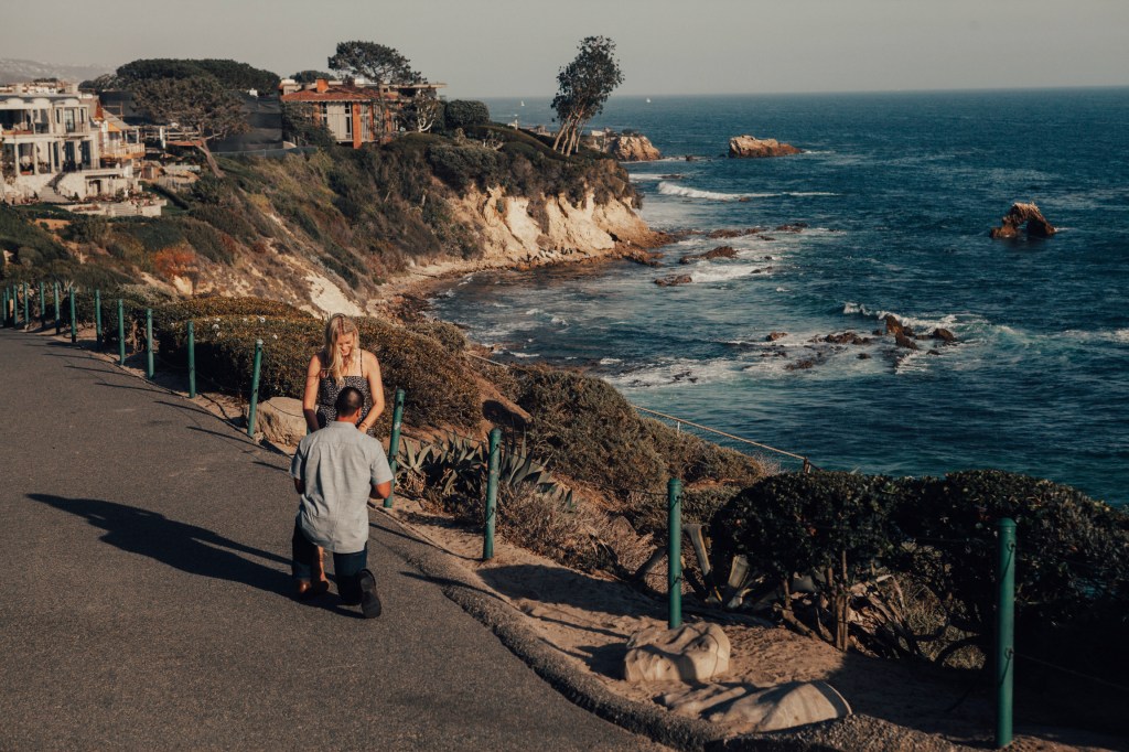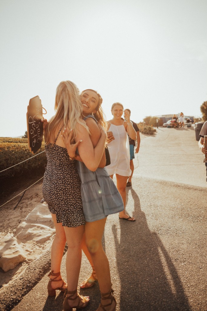 Those few days were a whirlwind for our family. We went to the casino, then to my brother’s baseball game and then we had dinner plans so I knew the proposal wasn’t going to happen that weekend because we seriously were SO BUSY. My mom told us to get ready for a nice BBQ dinner later that night because they won big on the slots at the casino, HAHA! However, I told Makenzie that we could go to one of my favorite spots in Corona Del Mar to look at the ocean because it had been a while since she’d seen the beach. Before dinner we got ready and headed there to hangout with our boyfriends! Little did I know the proposal was in motion. My best friend Emily had planned the entire proposal with Jesse and us heading to Corona Del Mar was just the start of the best day EVER.