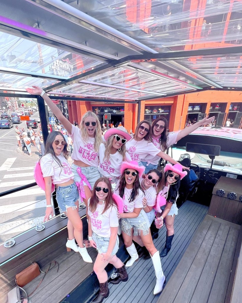 Today’s activity: The HonkyTonk Express Bus! If you haven’t been to Nashville, these are buses with clear tops that are partially open that drive around the city with bachelorette parties and other groups where you dance, drink and have fun with your group. We drove around for two hours with a break in the middle. It was SO much fun! You get to bring your own drinks and then a guide/bartender serves the drinks during the tour. We danced and had the best time! People on the streets of Nashville will stare or dance along with you (I’m pretty sure some people took photos and videos haha). They also stop halfway through at a bar for a bathroom break, which we all needed. We grabbed a shot, took a quick break and got back on the bus. I would 100% recommend this to any group!